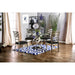 ROXO Silver/Black Round Dining Table, 48"DIA X 30"H, 123.4lbs. Place this flowing set in any modern setting. The swirling metal base durably supports the wide, round glass top while highlighting the beautiful satin plated powder coating. Relax in style as the padded microfiber cushions offer comfort while drawin g attention to the elegant back design. Features: Contemporary Style 10mm Tempered Glass Top Tapering Elliptical Post Table Base Ladder Back Chair Black Base & Padded Microfiber Seat Metal Frames w/ Satin Plated Powder Coating