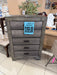 Dressed in a distressed gray oak finish, the handsome Nathan Collection by Elements Furniture adds warmth and style to any room. Featuring clean lines and modern black finished hardware, this transitional set is sure to impress. Matching case pieces with spacious storage drawers complete the look of this modern farmhouse inspired collection.