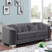 Luxury and comfort go hand in hand with this fully-upholstered piece. Tall arms are reminiscent of classic tuxedo sofas; however, they are angled lower towards the front for a more comfortable arm rest. The insides are button tufted, while it is lined with stylish vertical channel design around. Supported on solid wood legs shaped in a curved bracket, this ensemble is the perfect addition to any chic home.