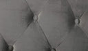 This elegantly refined bed contributes to a modest-yet-appealing atmosphere with its impressive design and stature. A fully-upholstered marvel, the durable yet caressing touch of the flannelette fabric is uniquely exquisite and the fine gray motif serves to establish the perfect reference point from which to base the bedroom's overall theme. A wide, padded, button-tufted headboard adds a sense of warmth and security, an inviting quality to the already inherent sense of comfort.