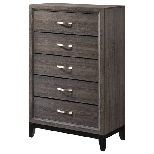 With its clean-lined look and modern attitude, this nightstand is a fresh style awakening. A warm charcoal hue over replicated oak grain easily com...