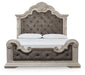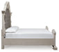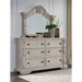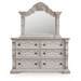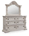 Inspired by the grandeur and grace of European traditional style, this opulent bedroom package is nothing short of stunning. Its large-scale decorative scrolled pilasters and detailed ornamental appliques are sure to make a sophisticated statement in your restful retreat. A timeless antiqued white coloration lends an air of subtle elegance to this sumptuous set