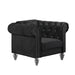 Introducing the Emma living room set - the perfect combination of style and comfort for your home. This set includes a sofa, loveseat, and chair, all featuring a stunning crystal tufted back that adds a touch of glamour to any space. Made with 100% polyester, these pieces are durable and easy to maintain. The set is available in three sleek colors - blue, black, and gray - so you can choose the one that best matches your decor. Upgrade your living room with the luxurious Emma set and enjoy hours of relaxation and entertainment.