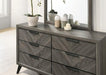 Something about this bed's cool gray finish and chevron grain pattern gives it a stylish vibe. The diagonal replicated grain meet at the center lin...