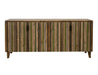 The Tiza Console effortlessly combines timeless elegance with a clean-lined design, presenting a simple yet sophisticated silhouette. Crafted from the finest grade pine, it offers exceptional quality and outstanding value. This console boasts a soft, multicolored hand-distressed surface with subtle green highlights. This unique finish adds depth and character to the piece, making it a standout feature in any room. With its practicality in mind, the Tiza Console is equipped with four doors that open to reveal ample storage space. Whether you're storing dishes, glasses, or media items, this console is designed to accommodate your needs while maintaining its elegant appearance.