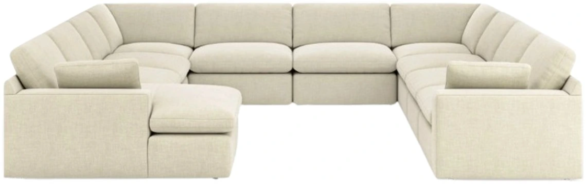 Includes 10 pieces: left-arm facing corner chaise, 6 armless chairs, 2 wedges and right-arm facing corner chair