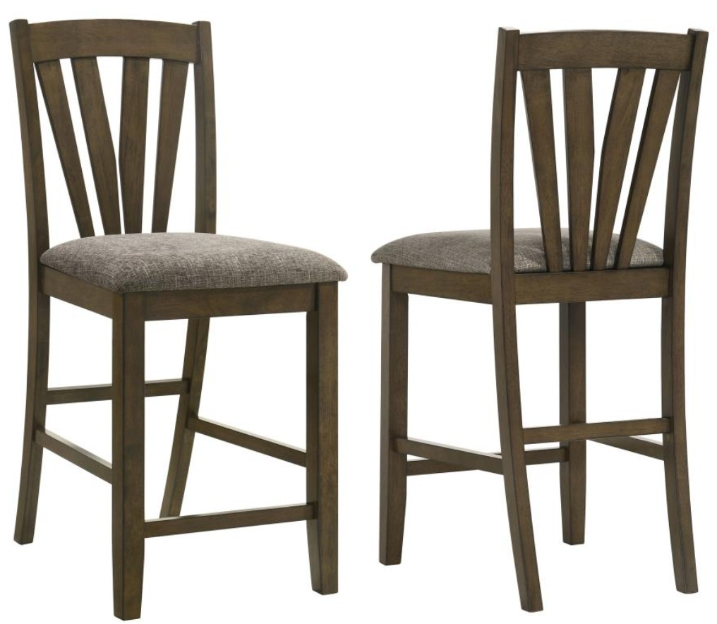 Complete your dining experience with this stylish and comfortable counter height dining chair. Crafted with a solid wood frame, this side chair offers sturdy support while the foam-padded seat cushions provide plush comfort. Upholstered in a grey fabric, the seat adds a warm and inviting feel to any dining space.Read More
