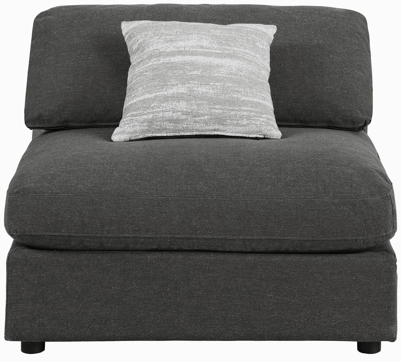Create your own modular home setup with this plush, armless chair. It entices you to sink into its deep, comfortable cushions. The chair can function alone, as well as part of a larger sectional sofa. The simple lines of the piece add up to a comfy, easy-to-use element in any decor. Linen adds a natural textural accent.