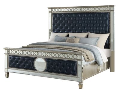 Cosmos Furniture's Brooklyn contemporary style king bed in silver finish wood is ultra-contemporary in design and scale. The Brooklyn Bed will add modern flair to your bedroom. The hand applied brush finish enhances the beauty of the detailed woodwork carvings. This exceptionally beautiful Silver bed features sharp contrast tufted upholstery on the headboard and footboard. Finished in brushed silver each piece of the suite is accented with silver finished feet of bed for the ultimate sturdy in contrast. Each case piece is highlighted with Mirror inserted decoration case goods in the Brooklyn Bed. Matching Nightstands and other bedroom set pieces are sold separately.