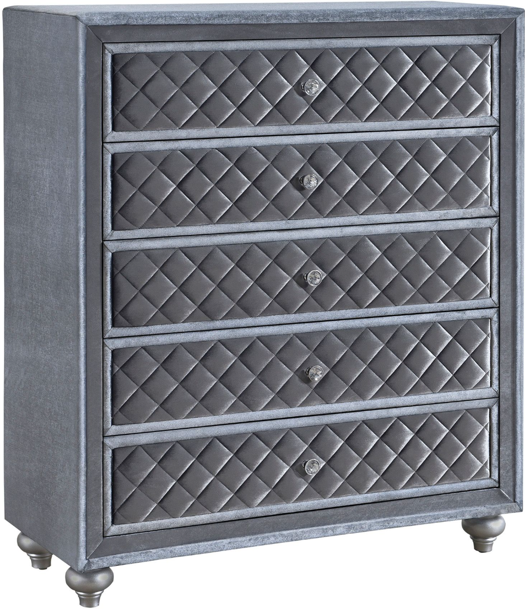 Include additional storage in your bedroom area with this chest from the Cameo collection, It has 5 drawers and a wood case finished in gray. Make a bold statement by incorporating this chest into your home.Read More