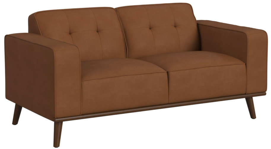 The Destiny Loveseat with Wood Front exudes the coveted charm of mid-century modern style. Built with framing of quality solid and engineered wood that is full upholstered in quality faux leather, this piece is built for durability. Comfortable foam cushioning, decorative tufting on the backrest.Read More