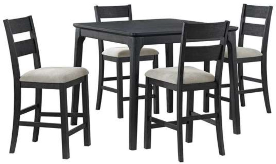 Dine in refined style with the Garcia 5-piece counter set in black. The sleek, black finish creates a refined aesthetic, while the soft, upholstered seats offer comfort for long and leisurely meals. With its versatile design, this set, including a table and four chairs.Read More
