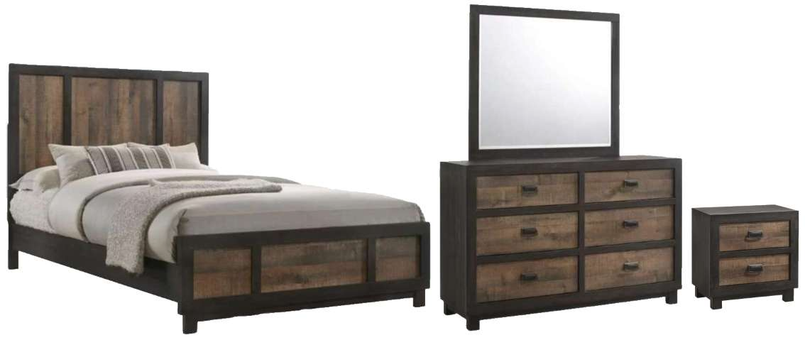 The full panel 4pc bedroom set is the perfect addition to your bedroom! This set includes a panel bed, dresser, mirror and nightstand. The bed features a trio panel design on both the headboard and footboard; spicing up the look of this classic bed design.Read More