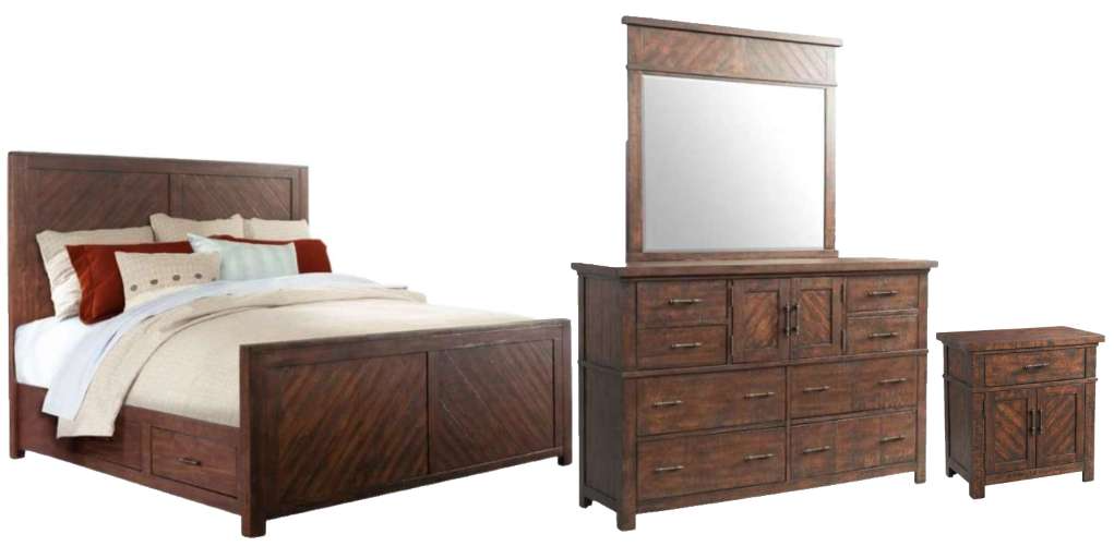 The Jax queen platform storage 4-piece set is just what your bedroom needs. This rustic dream set comes with a platform storage bed, dresser, mirror and nightstand. The storage bed comes with a storage drawer on each side rail, perfect for storing away extra linens or blankets.Read More