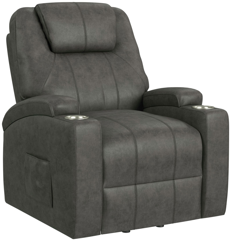 Sink into the warmth and comfort of the Kenmore power lift chair in simba dark gray. Its high-quality faux leather upholstery with decorative tufting adds elegance and ageless style to any room.Read More