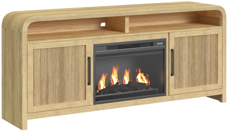 The Ridgemont 70" TV console combines classic charm and modern convenience with its natural wood finish and built-in fireplace insert for cozy ambiance. Its clean profile holds a prominent media center, while an adjustable shelf offers flexible storage for electronics, décor, or media essentials.Read More