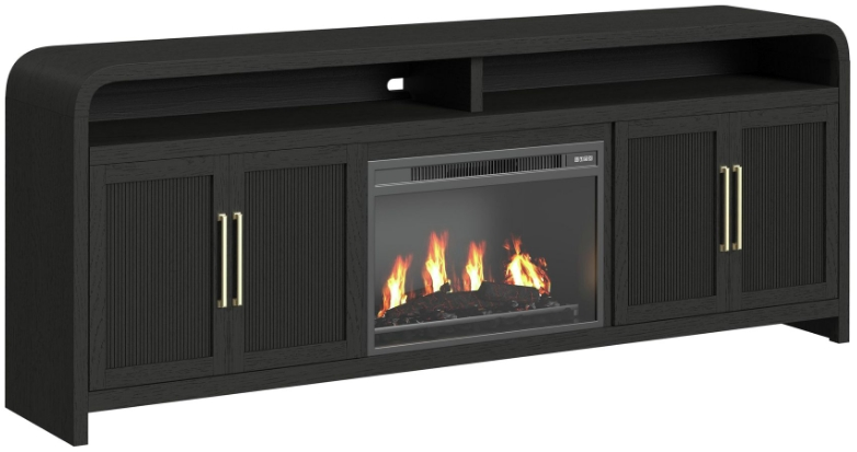 The Ridgemont 70" TV console presents a sleek, contemporary base for your media setup with a rich black-with-grain finish. Designed with a fireplace insert, it offers a clean, minimalist profile. An adjustable shelf ensures flexible storage, making it ideal for electronics, media accessories, and décor.Read More