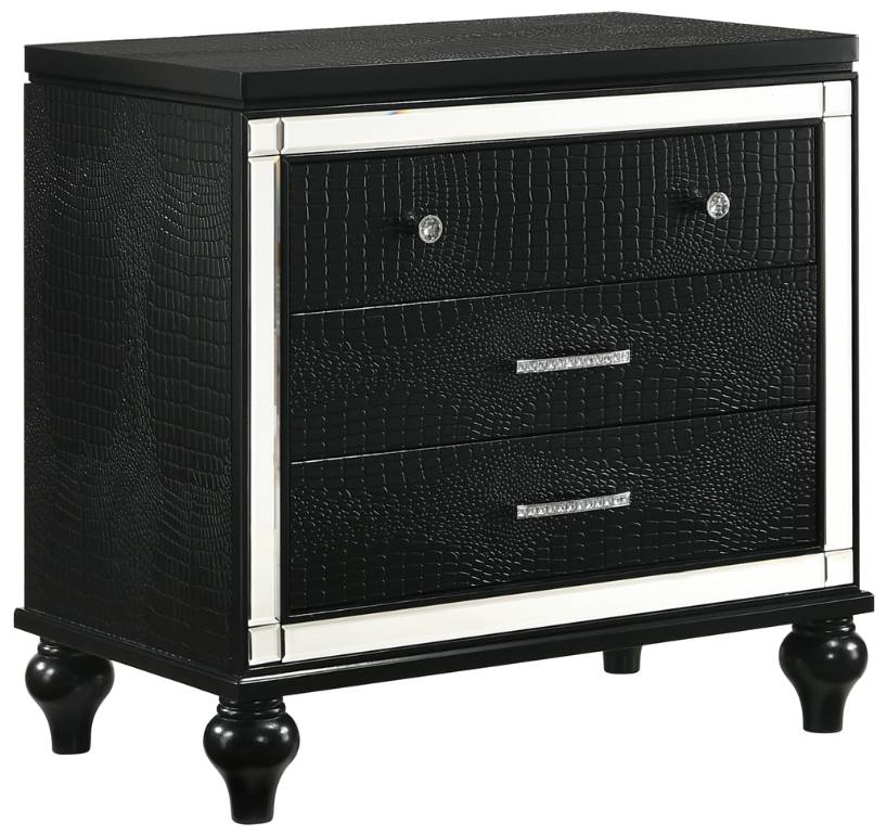 The Valentino 3 Drawer Nightstand in black is a luxurious addition to any bedroom. Crafted from a blend of manufactured and solid woods, it is built to last while maintaining its distinctive appeal.Read More