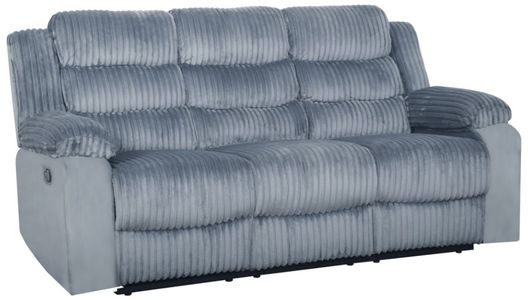 Contemporary Comfort: This couch features a modern design with clean lines, plush ribbed upholstery, and a relaxing reclining mechanism, combining both style and comfort for any living space