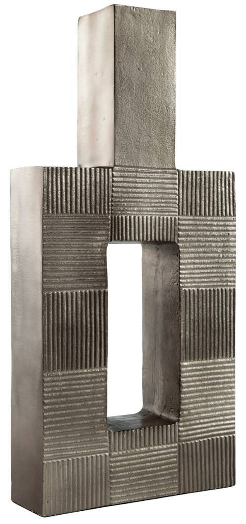 Stunning from all angles, this vase's contemporary geometric form acts as a captivating focal point for your mantle or bookshelf. Its antiqued nickel-tone body is detailed with subtle texture for added visual appeal. What a perfect fit for those seeking forward-thinking style.Read More